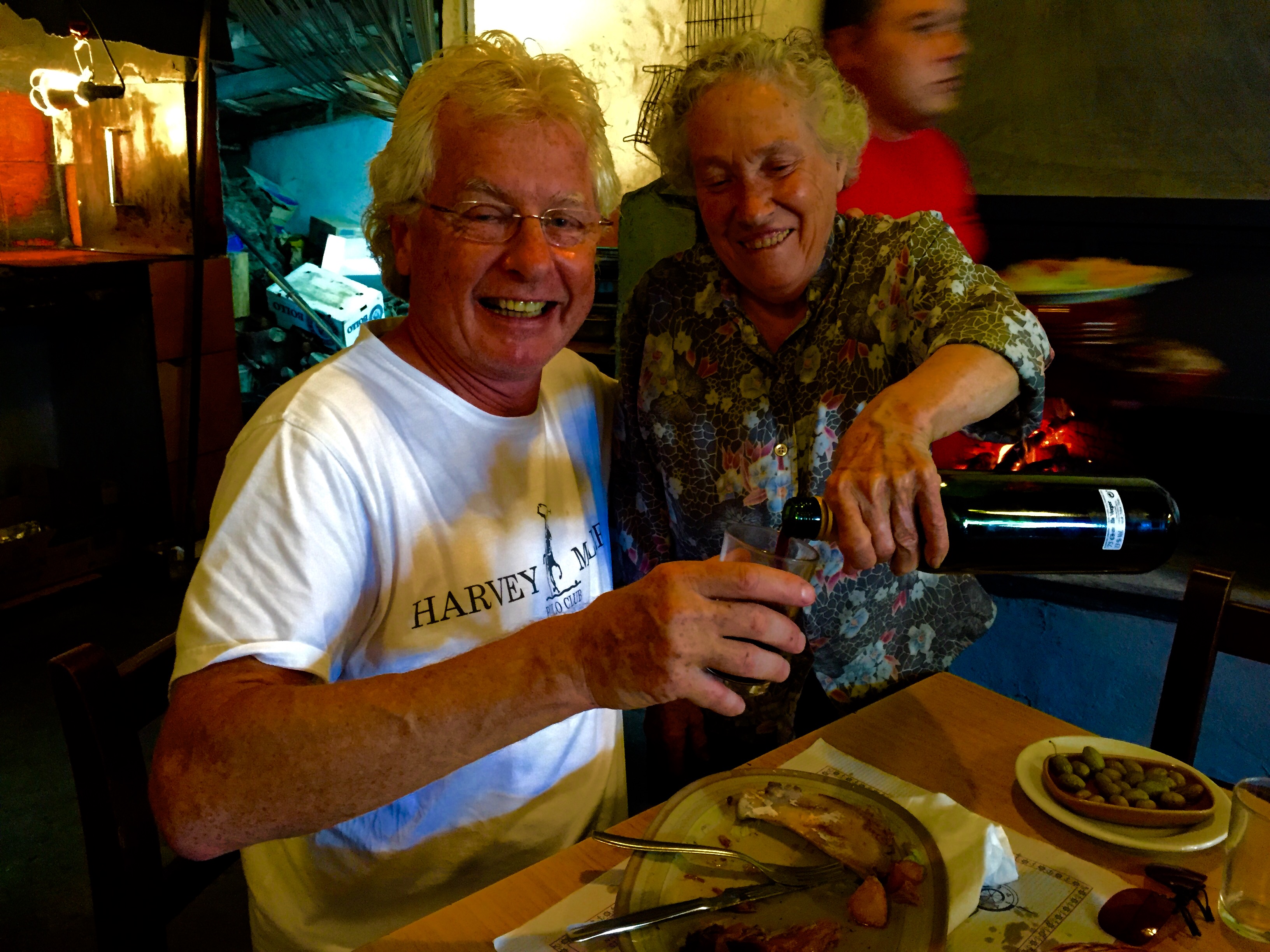 Auf dem Rückweg kehrte ich stets im „Es Verger“ ein. Vor 7 Jahren das letzte Mal. Ich liebte diese Atmosphäre, gemeinsam mit anderen Gästen an großen Holztischen mitten im als Restaurant umgebauten Ziegenstall zu sitzen und der Chefin bei der Lammzubereitung auf dem großen Ofen zuzusehen. Hier ist alles zeitlos wie vor 100 Jahren und ich hatte die Befürchtung, die alte Dame würde Ihre Arbeit eines Tages aufgeben. Doch siehe da: als ich heute wiederkam, durfte ich voller Freude und Dankbarkeit feststellen, das alles beim Alten geblieben ist! Die Chefin bzw. Mama des Hauses schiebt immernoch das Lamm in den riesigen Ofen und freut sich, mich wiederzusehen. Sie setzt mich an den besten Platz am Kamin und schenkt mir den Wein persönlich ein.