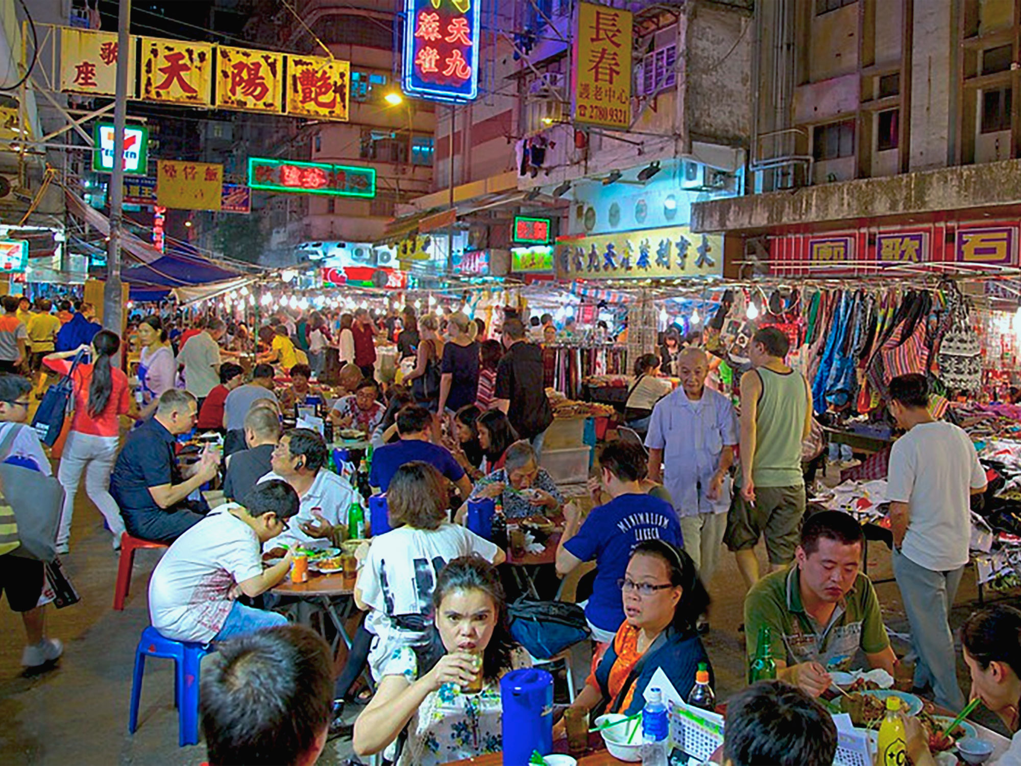 Auf dem Straßenbasar gibt es alles, was den Tourist fasziniert, aber meistens nicht braucht. Uhren und Elektronik, Jade und Schmuck aber auch Meeresfrüchte, Reis und Nudeln. Die Luft ist geschwängert von undefinierbaren Gerüchen und den Rauchschwaden der Garküchen – duftender Hafen – das bedeutet Hongkong ins Deutsche übersetzt.